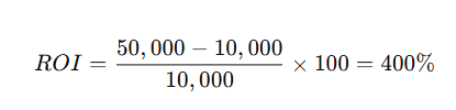 For example, if you spent $10,000 on a marketing campaign and generated $50,000 in sales, your ROI would be: